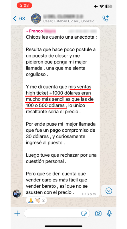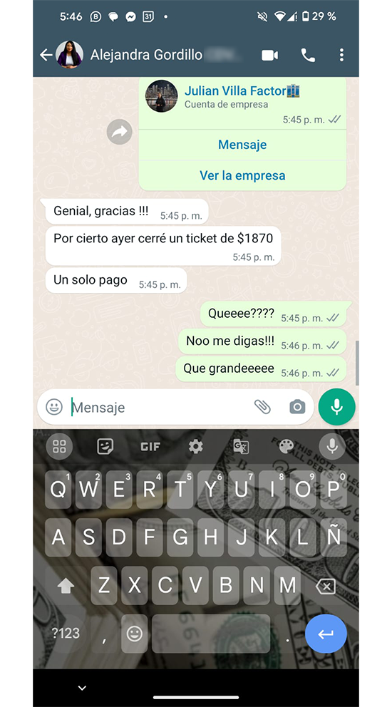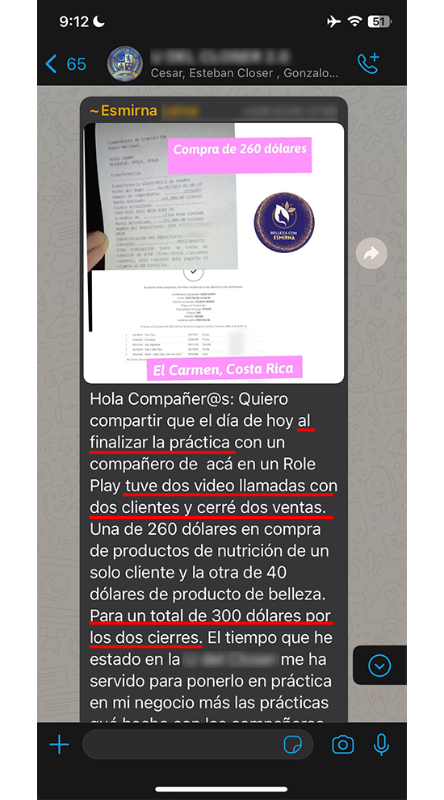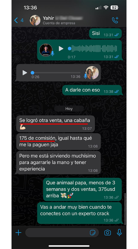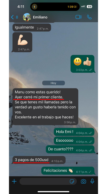 "En tan sólo dos semanas hice 3 ventas de USD$1500"